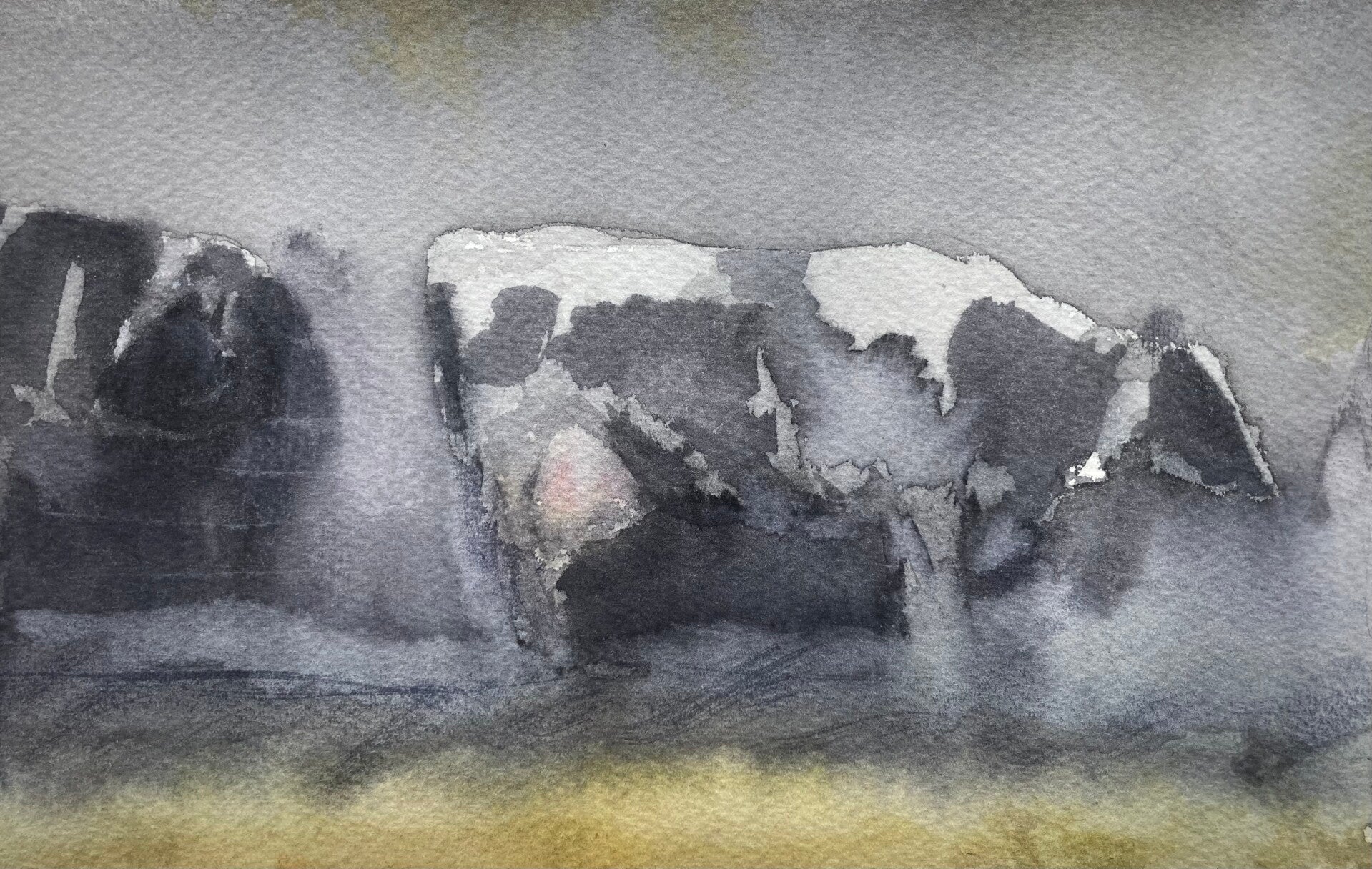 Ich räume der Unberechenbarkeit des Wassers einen zentralen Raum ein. Ich male mit viel Pigment und viel Wasser, mische gerne auf dem Papier und "modelliere" die Fläche.